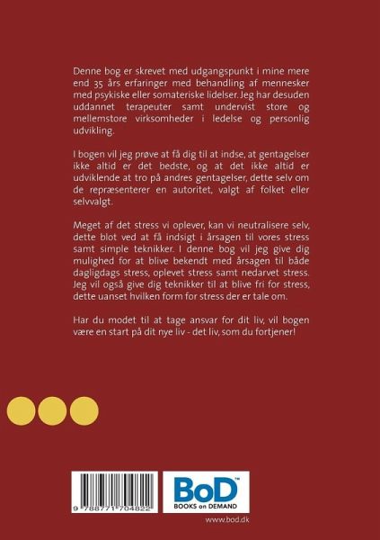 Mennesket er en race, der konstant søger udvikling og lærdom, alligevel er det tydeligt, at på det menneskelige plan, går vi i ring, vi gentager og gentager, og dette på tros af, at disse gentagelser giver os et negativt resultat. Vi tror på, at det vi altid har troet på er sandt, en sandhed der måske aldrig har været til stede, alligevel fortsætter vi. I denne bog vil jeg prøve på at få dig til at indse, at gentagelser ikke altid er af det bedste, og at det ikke altid er udviklende at tro på andres gentagelser, og dette selvom de repræsenterer en autoritet, valgt af folket eller selvvalgt. Meget af den stress vi oplever, kan vi neutralisere selv, dette blot ved at få indsigt i årsagen til vores stress samt simple teknikker. I denne bog vil jeg give dig mulighed for at blive bekendt med årsagerne til både dagligdags stress, oplevet stress samt nedarvet stress. Jeg vil også give dig teknikker til at blive fri for stress, dette uanset hvilken form for stress der er tale om.