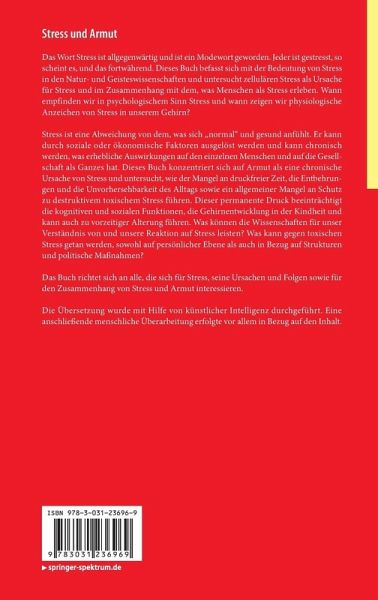 Stress ist eine Abweichung von dem, was sich "normal" und gesund anfühlt. Er kann durch soziale oder ökonomische Faktoren ausgelöst werden und kann chronisch werden, was erhebliche Auswirkungen auf den einzelnen Menschen und auf die Gesellschaft als Ganzes hat. Dieses Buch konzentriert sich auf Armut als eine chronische Ursache von Stress und untersucht, wie der Mangel an druckfreier Zeit, die Entbehrungen und die Unvorhersehbarkeit des Alltags sowie ein allgemeiner Mangel an Schutz zu destruktivem toxischem Stress führen. Dieser permanente Druck beeinträchtigt die kognitiven und sozialen Funktionen, die Gehirnentwicklung in der Kindheit und kann auch zu vorzeitiger Alterung führen. Was können die Wissenschaften für unser Verständnis von und unsere Reaktion auf Stress leisten? Was kann gegen toxischen Stress getan werden, sowohl auf persönlicher Ebene als auch in Bezug auf Strukturen und politische Maßnahmen?