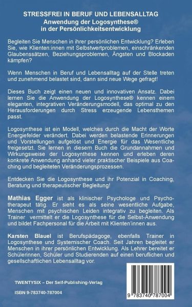 Begleiten Sie Menschen in ihrer persönlichen Entwicklung? Erleben Sie, wie Klienten:innen mit Selbstwertproblemen, einschränkenden Glaubenssätzen, Beziehungsproblemen, Ängsten und Blockaden kämpfen?Wenn Menschen in Beruf und Lebensalltag auf der Stelle treten und zunehmend belastet sind, dann sind neue Wege gefragt!Dieses Buch zeigt einen neuen und innovativen Ansatz. Dabei lernen Sie die Anwendung der Logosynthese® kennen einem eleganten, integrativen Veränderungsmodell, das optimal zu den Herausforderungen durch Stress erzeugende Lebensthemen passt.Logosynthese ist ein Modell, welches durch die Macht der Worte Energiefelder verändert. Dabei werden belastende Erinnerungen und Vorstellungen aufgelöst und Energie für das Wesentliche freigesetzt. Sie lernen in diesem Buch die Grundannahmen und Wirkungsweise der Logosynthese kennen und erleben deren konkrete Anwendung anhand vieler praktischer Beispiele aus Coa-ching und begleiteten Veränderungsprozessen.Entdecken Sie die Logosynthese und ihr Potenzial in Coaching, Beratung und therapeutischer Begleitung!Mathias Egger ist als klinischer Psychologe und Psycho-therapeut tätig. Er sieht es als seine wesentliche Aufgabe, Menschen mit psychischen Leiden integrativ zu begleiten. Als Trainer vermittelt er die Logosynthese für die Selbst-Anwendung und bildet Fachpersonal für die Arbeit mit Klientinnen und Klienten aus.Karsten Blauel ist Berufspädagoge, ebenfalls Trainer in Logosynthese und Systemischer Coach. Seit Jahren begleitet er Menschen in ihrer persönlichen Entwicklung. Als Lehrer bereitet er Schülerinnen, Schüler und Studierenden auf einen beruflichen und gesellschaftlichen Lebensalltag vor.