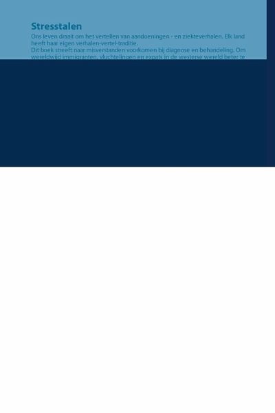 Ons leven draait om het vertellen van aandoeningen - en ziekteverhalen. Elk land heeft haar eigen verhalen-vertel-traditie.Dit boek streeft naar misverstanden voorkomen bij diagnose en behandeling. Om wereldwijd immigranten, vluchtelingen en expats in de westerse wereld beter te helpen.Dit boek is een stap op weg naar een holistische gezondheidszorg. Niet-westerse cliënten en patiënten profiteren hiervan.Dit boek bevat niet-westerse verhalen over ziekten en aandoeningen die zijn opgehangen aan de frames van de Afrikaanse spin Anansi en Ajapa, de bedriegende schildpad, het Indonesische meisje Too-too-moo en de Surinaamse bosgeesten.Ook komen verhalen tradities aan bod, zoals de Arabische Hakawati en de Turkse Meddah.Verder worden de Culturele Concepten voor Lijdensdruk besproken.Stresstalen wil de afstand tussen mensen uit verschillende culturen overbruggen.