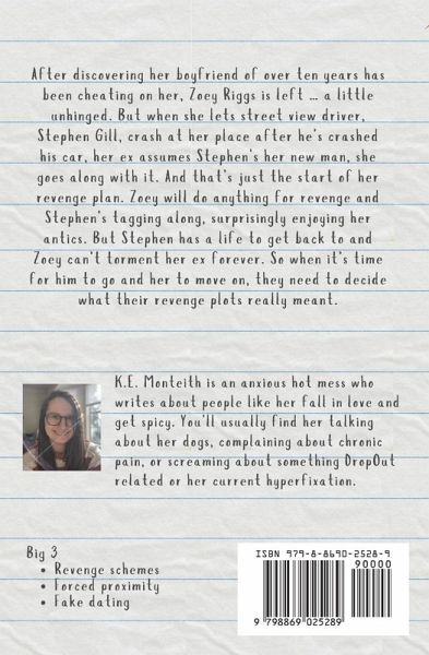 Book 2 in the Snowfall Valley Series Zoey Riggs had her suspicions about her high school sweetheart. But she didn't think those suspicions would be confirmed in the ER on New Year's Eve after her boyfriend wrecked her vintage Corvette... while getting a blow job. Now she's alone and ... a little unhinged. Stephen Gill was supposed to take a break from programming a new GPS. Instead, he took the street view car out for a cross-country road trip to fill in their dead spaces. But one deer in his headlights and the car is wrecked. And what do you do when you've had a shit day? You get drunk at the restaurant next door to the mechanic, Zoey's shop. With nowhere else to put her new, drunk client, Zoey lets Stephen crash at her place. And when her ex shows up the next morning, Stephen tries to help out. By pretending to be her boyfriend. And that sparks an idea. Zoey promises to get her revenge by making her ex's life a living hell, beating him at his drag race, and rubbing her new (fake) man in his face. And Stephen happily tags along, whether it's a road trip in a stolen car, breaking into the newspaper office, or tagging the whole town with scandalous bumper stickers. But the fun can only last for so long. So what happens when Zoey admits she needs to move on and Stephen's car is back up and running? Content warnings: sexually explicit scenes, heavy mentions of a cheating ex, moderate depiction of loss of a parent, and a minor scene with an officer/sheriff that does not end in conflict Tropes: revenge schemes, forced proximity, small town