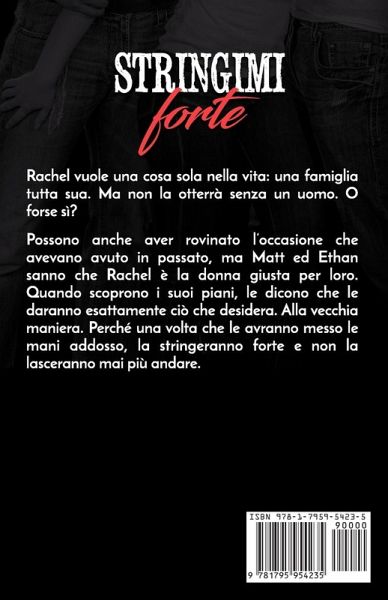 Rachel vuole una cosa sola nella vita: una famiglia tutta sua. Ma non la otterrà senza un uomo. O forse sì? Possono anche aver rovinato l'occasione che avevano avuto in passato, ma Matt ed Ethan sanno che Rachel è la donna giusta per loro. Quando scoprono i suoi piani, le dicono che le daranno esattamente ciò che desidera. Alla vecchia maniera. Perché una volta che le avranno messo le mani addosso, la stringeranno forte e non la lasceranno mai più andare. Avvertimento: da sciogliere le mutande! Stringimi forte è il quarto libro della serie follemente spinta in cui due cowboy alfa ossessionati danno alla donna dei loro sogni esattamente ciò che desidera. Questo romanzo indipendente a lieto fine gira tutto attorno a lei - niente scene tra uomini.