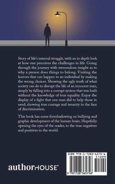 Story of life's internal struggle, with an in depth look at how one perceives the challenges in life. Going through the journey with tremendous insight as to why a person does things to belong. Visiting the horrors that can happen to an individual by making the wrong choices. Showing the ugly truth of what society can do to disrupt the life of an innocent man, simply by falling into a corrupt system that was built without the knowledge of true equality. Enjoy the display of a fight that one man did to help those in need, showing true courage and tenacity in the face of discrimination. This book has some foreshadowing on bullying and graphic development of the human brain. Hopefully opening the eyes of the reader, to the true negatives and positives in the world.