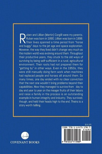 Ruben and Lillian (Martin) Corgill were my parents. Ruben was born in 1890. Lillian was born in 1898. Their lives spanned a time period from "horse and buggy" days to the jet age and space exploration. However, the way they lived didn’t change very much as the modern world was evolving around them. Throughout their productive years, they stuck to the old ways of surviving by being self-sufficient in a rural, agricultural environment. Their roots had not prepared them for "getting by" in other ways. Even in the 1950s, they were still manually doing farm work when machines had replaced people and horses all around them. So many times, one day ended with no clear conviction that the next one wouldn’t bring problems beyond their capabilities. How they managed to survive from day to day and year to year on the meager fruits of their labors and raise a family in the process is an outstanding example in human integrity and industry. They survived, though, and held their heads high to the end. Theirs is a story worth telling.