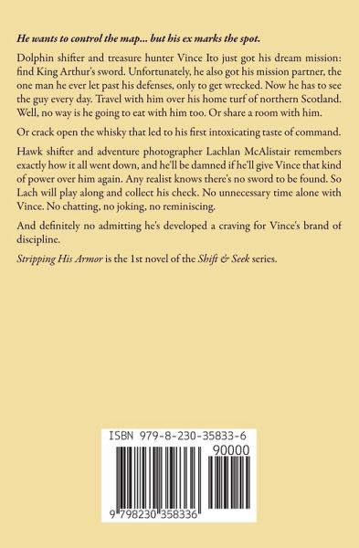 He wants to control the map... ...but his ex marks the spot. Dolphin shifter and treasure hunter Vince Ito just got his dream mission: find King Arthur's sword. Unfortunately, he also got his mission partner, the one man he ever let past his defenses, only to get wrecked. Now he has to see the guy every day. Travel with him over his home turf of northern Scotland. Well, no way is he going to eat with him too. Or share a room with him. Or crack open the whisky that led to his first intoxicating taste of command. + Hawk shifter and adventure photographer Lachlan McAlistair remembers exactly how it all went down. And he'll be damned if he'll give Vince that kind of power over him again. Any realist knows there's no sword to be found. So Lach will play along and collect his check. No unnecessary time alone with Vince. No chatting, no joking, no reminiscing. And definitely no admitting he's developed a craving for Vince's brand of discipline. + Stripping His Armor is the 1st novel of the Shift & Seek m/m shifter series. Set your coordinates for a disoriented control freak, a Scot who knows just how to push his buttons, some damn fine whisky, and two guys secretly hoping for a second chance. Tropes: second chances, opposites attract, forced proximity, fake relationship Content Notes: This story involves depictions/descriptions of a consensual D/s dynamic, production & consumption of alcohol, firearms & hunting, murder, and attempted murder.
