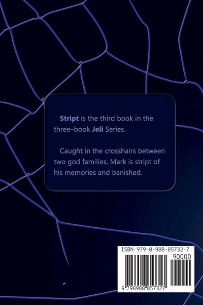 Stript is the third book in the Jeli series, about a clash between African and Mycenaean god families. Caught in the crosshairs between two god families, Mark is stript of his memories and banished. He will need a lot of help from his friends.