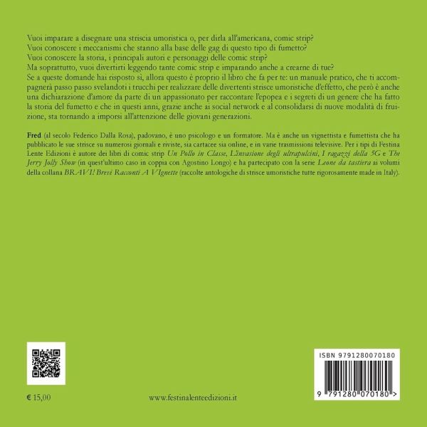 Vuoi imparare a disegnare una striscia umoristica o, per dirla all'americana, una comic strip? Vuoi conoscere i meccanismi che stanno alla base delle gag di questo tipo di fumetto? Vuoi conoscere la storia, i principali autori e personaggi delle comic strip? Ma soprattutto, vuoi divertirti leggendo tante comic strip e imparando anche a crearne di tue? Se hai risposto sì, questo è il libro che fa per te: un manuale pratico, che ti accompagnerà passo passo svelandoti i trucchi per realizzare delle divertenti strisce umoristiche d'effetto, e al contempo ti racconterà i fatti salienti, i segreti e le curiosità di un genere che ha fatto la storia del fumetto e che in questi anni, grazie anche ai social network e al consolidarsi di nuove modalità di fruizione, è tornato alla ribalta e diverte le giovani generazioni.