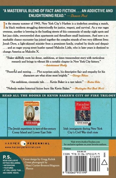 The Rev. Jonah Dove is the son of a legendary Harlem minister, and a man troubled in both mind and spirit. He feels himself unworthy and incapable of taking up the burden of running his church from the larger-than-life figure who is his father. He is haunted both by his own, shameful history of "passing" as a white man in college, and by the prospects for his people in the harsh, new, racist age he fears the world is entering. Malcolm Little -- better known as Malcom X -- is a teenage hustler from Lansing, Michigan by way of Boston, a young man on the make, trying always to be something bigger, tougher, savvier, and more confident than he really is. On his way to New York, Malcolm happens to come to the rescue of Jonah and his wife, Amanda, when they are attacked by some drunken soldiers on the train. From then on, their paths cross repeatedly as they each go about trying to find what they really want out of the roiling, wartime city, until the moment when Harlem finally erupts around them, as a people driven beyond endurance strikes out blindly at all the forces keeping it entrapped in misery and hopelessness. Stranded on the streets of a rioting city, Jonah and Malcolm meet each other once more, as they come to grips with what they are and what the future will hold for them.