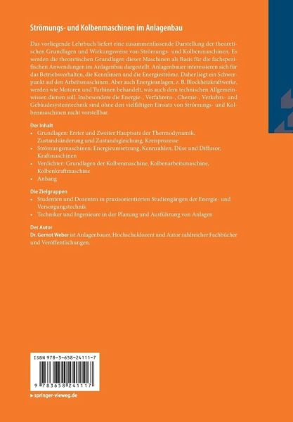 Das vorliegende Lehrbuch liefert eine zusammenfassende Darstellung der theoretischen Grundlagen und Wirkungsweise von Strömungs- und Kolbenmaschinen. Es werden die theoretischen Grundlagen dieser Maschinen als Basis für die fachspezifischen Anwendungen im Anlagenbau dargestellt. Anlagenbauer interessieren sich für das Betriebsverhalten, die Kennlinien und die Energieströme. Daher liegt ein Schwerpunkt auf den Arbeitsmaschinen. Aber auch Energieanlagen, z. B. Blockheizkraftwerke, werden wie Motoren und Turbinen behandelt, was auch dem technischen Allgemeinwissen dienen soll. Insbesondere die Energie-, Verfahrens-, Chemie-, Verkehrs- und Gebäudesystemtechnik sind ohne den vielfältigen Einsatz von Strömungs- und Kolbenmaschinen nicht vorstellbar.