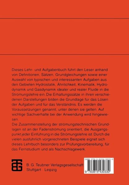 Dieses Lehr- und Aufgabenbuch führt den Leser anhand von Definitionen, Sätzen, Grundgleichungen sowie einer Auswahl von typischen und interessanten Aufgaben aus den Gebieten Hydrostatik, Ähnlichkeit, Kinematik, Hydrodynamik und Gasdynamik idealer und realer Fluide in die Strömungslehre ein. Die Erhaltungssätze in ihren verschiedenen Darstellungen bilden die Grundlage für das Lösen der Aufgaben und für das Verständnis. Es werden die Voraussetzungen genannt, unter denen sie gelten. Auf wichtige Sachverhalte bei der Anwendung wird hingewiesen. Die Zusammenstellung der strömungstechnischen Grundlagen ist an der Fadenströmung orientiert, die Ausgangspunkt jeder Einführung in die Strömungslehre ist. Durch die vielen ausführlich vorgerechneten Beispiele eignet sich dieses Lehrbuch besonders zur Prüfungsvorbereitung, für das Selbststudium und als Nachschlagewerk.