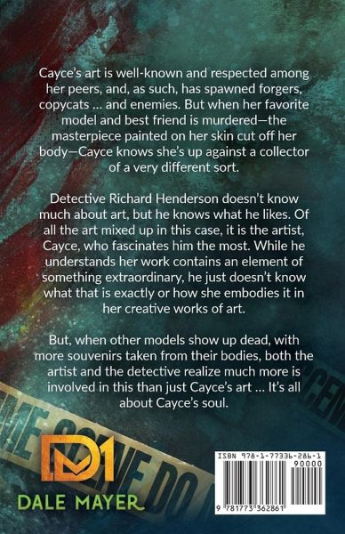 Cayce's art is well-known and respected among her peers, and, as such, has spawned forgers, copycats ... and enemies. But when her favorite model and best friend is murdered-the masterpiece painted on her skin cut off her body-Cayce knows she's up against a collector of a very different sort. Detective Richard Henderson doesn't know much about art, but he knows what he likes. Of all the art mixed up in this case, it is the artist, Cayce, who fascinates him the most. While he understands her work contains an element of something extraordinary, he just doesn't know what that is exactly or how she embodies it in her creative works of art. But, when other models show up dead, with more souvenirs taken from their bodies, both the artist and the detective realize much more is involved in this than just Cayce's art ... It's all about Cayce's soul.