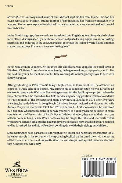 Stroke of Love is a story about years of love Michael kept hidden from Elaine. She had her own secrets about Michael, but her mother's fears insulated her from a relationship with anyone. She became exposed to Michael's true character at a very emotional and crucial time in her life. In the Greek language, three words are translated into English as love. Agape is the highest form of love, distinguished by a deliberate choice, not just a feeling. Agape love is everlasting, sacrificial, and enduring to the end. Can Michael enter into the isolated world Elaine's mother created and expose Elaine to a true everlasting love?