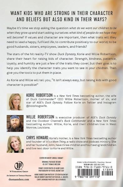 Korie Robertson is a NYT best-selling author, star and executive producer of A&E's Duck Dynasty and Duck Dynasty: The Revival. She stays busy with the family businesses Duck Commander and Tread Lively Productions. Korie is passionate about faith, family, and the power of uplifting entertainment. She loves life with her husband, Willie, their six kids and growing number of grandchildren on their family compound in West Monroe, Louisiana. Writing credits include: The Duck Commander Family: How Faith, Family, and Ducks Built a Dynasty, Duck Commander Devotions for Kids, and Strong and Kind: Raising Kids of Character.