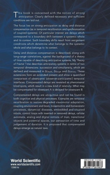 The focus lies on strong anticipation as delay and distance compensation (as in temporal recalibration and synchronization of coupled systems). Of particular interest are delays which correspond to a boundary shift between a systemic whole and its context. Such boundary shifts result from assignment conditions which determine what belongs to the systemic whole and what belongs to its context. Delay and distance compensation is described, along with long-range correlations, against the background of a theory of time capable of describing anticipative systems. My Theory of Fractal Time describes anticipatory systems in terms of two temporal dimensions: succession and simultaneity, which are defined and measured in ¿tdepth, ¿tlength and ¿tdensity. These extensions form an extended present and allow a quantified comparison of obserpants' (observer-participants') temporal interfaces. Compensated delays are revealed as phenomenal blind spots, which result in a new kind of relativity: What may be compensated for obserpant A is delayed for obserpant B. Compensated delays are ubiquitous and can be found in both cognitive and physical processes. Examples are temporal recalibration to restore degraded visuomotor adaptation, coupling environment and brain, biosemiotics and homeostatic processes, dynamical diseases, embedded and situated robots, control loops with inserted or removed delays, cellular automata, analog and digital notions of trust, transitional objects and potential spaces, our perception of time and judgement of duration. It is proposed that compensated delays emerge as natural laws.