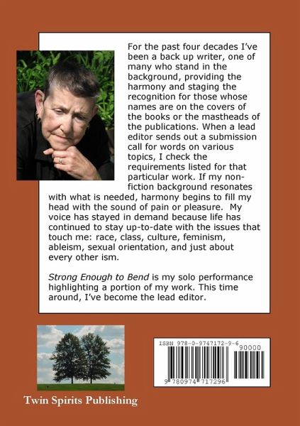 In Strong Enough to Bend, author Judith K. Witherow compiles a sampling from four decades of her essays and poems that describe the real life experiences of a disabled, mixed blood Native American Indian lesbian raised in Appalachian poverty. Much of the work has been previously published in anthologies, university women's studies texts and feminist periodicals. This unique memoir is the first collection exclusively authored by Witherow.