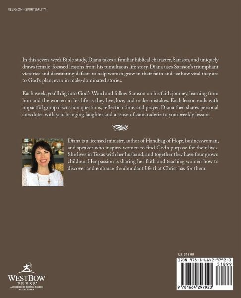In this seven-week Bible study, Diana takes a familiar biblical character, Samson, and uniquely draws female-focused lessons from his tumultuous life story. Diana uses Samson's triumphant victories and devastating defeats to help women grow in their faith and see how vital they are to God's plan, even in male-dominated stories. Each week, you'll dig into God's Word and follow Samson on his faith journey, learning from him and the women in his life as they live, love, and make mistakes. Each lesson ends with impactful group discussion questions, reflection time, and prayer. Diana then shares personal anecdotes with you, bringing laughter and a sense of camaraderie to your weekly lessons.