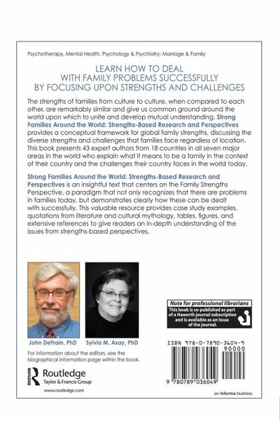The strengths of families from culture to culture, when compared to each other, are remarkably similar and give us common ground around the world upon which to unite and develop mutual understanding. Strengths-Based Research and Perspectives: Strong Families Around the World, provides a conceptual framework for global family strengths, discussing the diverse strengths and challenges that families face regardless of location. This book presents 43 expert authors from 18 countries in all seven major areas in the world who explain what it means to be a family in the context of their country and the challenges their country faces in the world today.