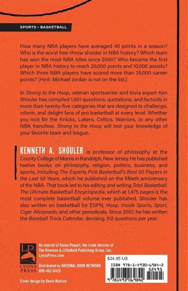 How many NBA players have averaged forty points in a season? Who is the worst free-throw shooter in NBA history? Which team has won the most NBA titles since 2000? Who became the first player in NBA history to reach 20,000 points and 10,000 assists? Which three NBA players have scored more than 35,000 career points? (Hint: Michael Jordan is not on the list.) Veteran sports writer and trivia expert Ken Shouler has compiled 1,501 trivia questions, quotations, and factoids, broken into more than twenty-five categories designed to challenge, inform, and delight fans of pro basketball at every level. Whether you root for the Knicks, Lakers, Celtics, Warriors, or any other NBA franchise, Strong to the Hoop will test your knowledge of your favorite team and league.
