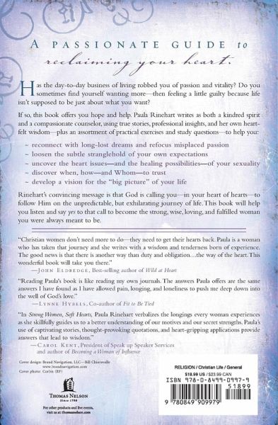 Recently updated with an expanded study guide, Strong Women, Soft Hearts has quickly become an important study for women of all ages. Through inspiring real-life testimonies, Paula Rinehart writes as both a kindred spirit and a compassionate counselor to women feeling robbed of their passions and trapped by life's disappointing realities