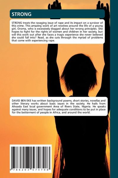 STRONG treats the ravaging issue of rape and its impact on a survivor of this crime. This amazing work of art revolves around the life of a young girl, Oroma, who is excessively dogged about her wrong principles. She hopes to fight for the rights of women and children in her society, but will this work out after she faces a tragic experience she never believed she could fall into? Read, as she cuts through the myriad of problems that come with experiencing rape.