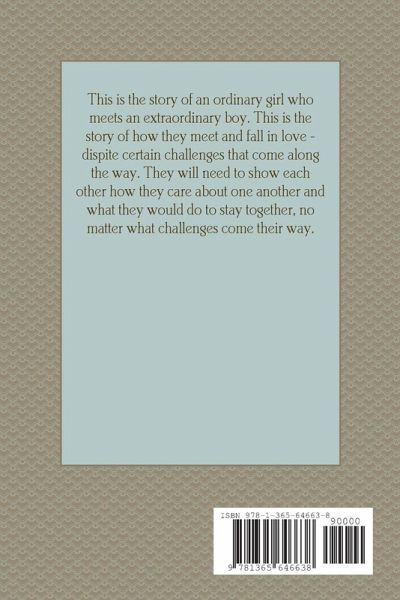 This is the story of an ordinary girl who meets an extraordinary boy. This is the story of how they meet and fall in love - dispite certain challenges that come along the way. They will need to show each other how they care about one another and what they would do to stay together, no matter what challenges come their way