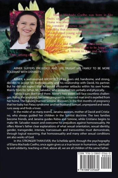 ABNER SUFFERS PREJUDICE AND LIFE TAUGHT HIS FAMILY TO BE MORE TOLERANT WITH DIVERSITY. ABNER, a well-resolved ARCHITECT of 35 years old, handsome, and strong, decides to accept his homosexuality and his relationship with David, his partner. But he did not expect that he would encounter setbacks within his own home. Mainly from his father, Mr. Salvador, who assaulted him verbally and physically. Family issues don't end there. Abner's two sisters will face countless challenges. Rúbia, the youngest, becomes pregnant by a married man and is expelled from her home. The happily married Simone, discovers in the first months of pregnancy that her baby has Patau syndrome and her husband Samuel, unprepared and weak, runs away and finds a lover. In the midst of so many events, Janaina appears, mother of David and Cristiano, who always guided her children in the Spiritist doctrine. The two families become friends, and Janaina guides Rúbia and Simone, while Cristiano begins to make Mr. Salvador reason and overcome his prejudices against homosexuality. He offers Abner's father clear explanations of what sexual orientation, sexual identity, gender, transgender, intersex, transsexuals and transvestites must demonstrate, through logical reasoning, that homosexuality and many other sexual conditions are also works of God. In this STRONGER THAN EVER, the Schellida spirit, through the psychography of Eliana Machado Coelho, once again gives us a true lesson in humanism, spirituality and solidarity, teaching us that, above all, we are all children of the same Father.