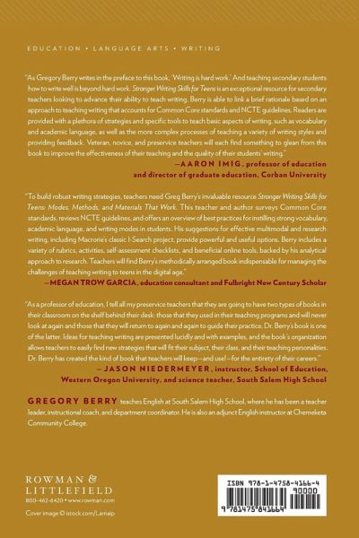 Stronger Writing Skills for Teens offers middle and high school teachers strategies, techniques, and materials for teaching adolescent writing. It focuses on quality writing instruction and presents the modes of writing as defined by Common Core State Standards, with strategies, tips, and suggestions for teaching each mode.