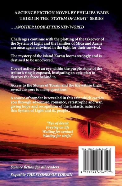 'Stronghold of Light' is the third and final book of the 'System of Light' trilogy. An interesting combination of Science fiction and Fantasy it will interest readers of varying ages who enjoy a dynamic and creative story. Taking this new world further into the discovery of its origins, whilst faced with ongoing threats from diabolical challengers of another planetary system, the inhabitants rise to protect their home System, the System of Light. The arrival of one individual changes their destiny making it an entrancing and interesting fantasy. The incredible Stones of Torain play a vital role in offering more and more pieces of their history. The mystery of the island off the shores of the mainland is destined to be uncovered exposing the unscrupulous nature of one condemned traitor. The presence of an eye in the stone of the traitor's ring opens a new and frightening look at the powers of an evil force which has affected so much of their lives. Combining their strengths with that of the Galactic Space Force gives an opportunity none would ever have expected.