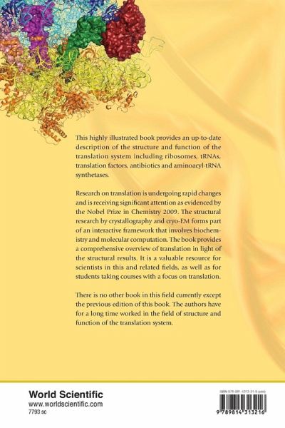 This highly illustrated book provides an up-to-date description of the structure and function of the translation system including ribosomes, tRNAs, translation factors, antibiotics and aminoacyl-tRNA synthetases. Research on translation is undergoing rapid changes and is receiving significant attention as evidenced by the Nobel Prize in Chemistry 2009. The structural research by crystallography and cryo-EM forms part of an interactive framework that involves biochemistry and molecular computation. The book provides a comprehensive overview of translation in light of the structural results. It is a valuable resource for scientists in this and related fields, as well as for students taking courses with a focus on translation. There is no other book in this field currently except the previous edition of this book. The authors have for a long time worked in the field of structure and function of the translation system.