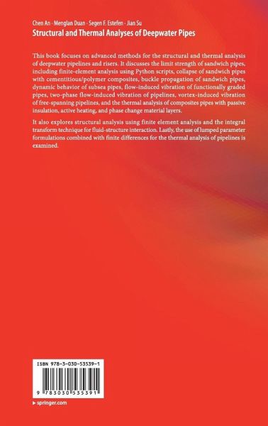 This book focuses on advanced methods for the structural and thermal analysis of deepwater pipelines and risers. It discusses the limit strength of sandwich pipes, including finite-element analysis using Python scripts, collapse of sandwich pipes with cementitious/polymer composites, buckle propagation of sandwich pipes, dynamic behavior of subsea pipes, flow-induced vibration of functionally graded pipes, two-phase flow-induced vibration of pipelines, vortex-induced vibration of free-spanning pipelines, and the thermal analysis of composites pipes with passive insulation, active heating, and phase change material layers. It also explores structural analysis using finite element analysis and the integral transform technique for fluid-structure interaction. Lastly, the use of lumped parameter formulations combined with finite differences for the thermal analysis of pipelines is examined.