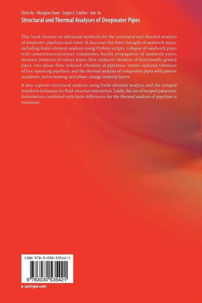 This book focuses on advanced methods for the structural and thermal analysis of deepwater pipelines and risers. It discusses the limit strength of sandwich pipes, including finite-element analysis using Python scripts, collapse of sandwich pipes with cementitious/polymer composites, buckle propagation of sandwich pipes, dynamic behavior of subsea pipes, flow-induced vibration of functionally graded pipes, two-phase flow-induced vibration of pipelines, vortex-induced vibration of free-spanning pipelines, and the thermal analysis of composites pipes with passive insulation, active heating, and phase change material layers. It also explores structural analysis using finite element analysis and the integral transform technique for fluid-structure interaction. Lastly, the use of lumped parameter formulations combined with finite differences for the thermal analysis of pipelines is examined.