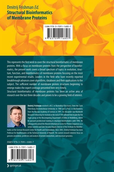 This book is the first one specifically dedicated to the structural bioinformatics of membrane proteins. With a focus on membrane proteins from the perspective of bioinformatics, the present work covers a broad spectrum of topics in evolution, structure, function, and bioinformatics of membrane proteins focusing on the most recent experimental results. Leaders in the field who have recently reported breakthrough advances cover algorithms, databases and their applications to the subject.