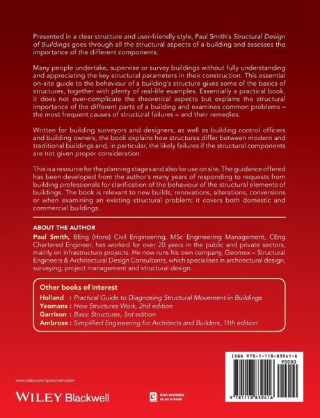 of a building's structure. Presented in a clear structure and user-friendly style, the book goes through all the structural aspects of a building and assesses the importance of the different components. It explains the structural behaviour of buildings, giving some of the basics of structures together with plenty of real-life examples and guidance.
