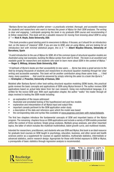 "Barbara Byrne has published another winner--a practically oriented, thorough, and accessible resource for students and researchers who want to harness the power of Mplus for their SEM analyses. The writing is clear and engaging. I anticipate assigning the book in my graduate SEM course and recommending it to fellow researchers. This book will be a valuable resource for moving from knowing about SEM to using it." - Rick H. Hoyle, Duke University, USA