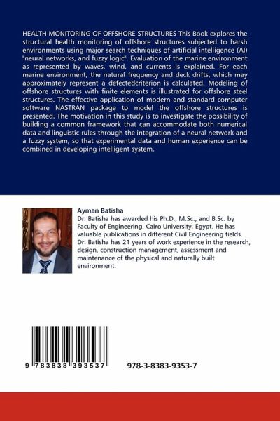 HEALTH MONITORING OF OFFSHORE STRUCTURES This Book explores the structural health monitoring of offshore structures subjected to harsh environments using major search techniques of artificial intelligence (AI) "neural networks, and fuzzy logic". Evaluation of the marine environment as represented by waves, wind, and currents is explained. For each marine environment, the natural frequency and deck drifts, which may approximately represent a defectedcriterion is calculated. Modeling of offshore structures with finite elements is illustrated for offshore steel structures. The effective application of modern and standard computer software NASTRAN package to model the offshore structures is presented. The motivation in this study is to investigate the possibility of building a common framework that can accommodate both numerical data and linguistic rules through the integration of a neural network and a fuzzy system, so that experimental data and human experience can be combined in developing intelligent system.