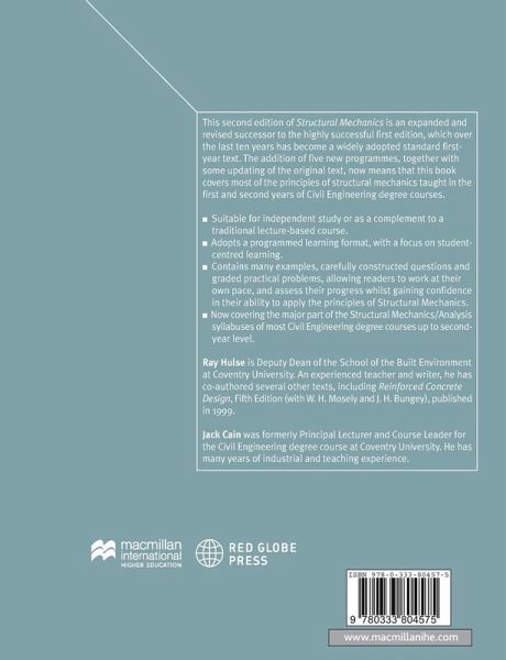 This second edition of Structural Mechanics is an expanded and revised successor to the highly successful first edition, which over the last ten years has become a widely adopted standard first year text. The addition of five new programmes, together with some updating of the original text, now means that this book covers most of the principles of structural mechanics taught in the first and second years of civil engineering degree courses. · Suitable for independent study or as a compliment to a traditional lecture-based course · Adopts a programmed learning format, with a focus on student-centred learning · Contains many examples, carefully constructed questions and graded practical problems, allowing the reader to work at their own pace, and assess their progress whilst gaining confidence in their ability to apply the principles of Structural Mechanics · Now covering the major part of the Structural Mechanics/Analysis syllabuses of most Civil Engineering degree courses up to second year level.