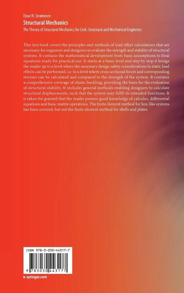This text book covers the principles and methods of load effect calculations that are necessary for engineers and designers to evaluate the strength and stability of structural systems. It contains the mathematical development from basic assumptions to final equations ready for practical use. It starts at a basic level and step by step it brings the reader up to a level where the necessary design safety considerations to static load effects can be performed, i.e. to a level where cross sectional forces and corresponding stresses can be calculated and compared to the strength of the system. It contains a comprehensive coverage of elastic buckling, providing the basis for the evaluation of structural stability. It includes general methods enabling designers to calculate structural displacements, such that the system may fulfil its intended functions. It is taken for granted that the reader possess good knowledge of calculus, differential equations and basic matrix operations. The finite element method for line-like systems has been covered, but not the finite element method for shells and plates.