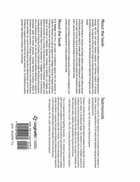Structures support load and are essential to define form and space. To design structures in synergy with form and space requires creativity and informed intuition of structural principles. The objective of Structure and Design is to introduce structural principles as the foundation of creative design and demonstrate successful application through many case studies. Using rich illustrations, Structure and Design clarifies complex concepts without calculus and provides greater insight for readers with mathematics background. It includes details in wood, steel, concrete, masonry, and fabric and contains graphs that streamline complex tasks, such as column buckling and design for wind and seismic forces. Structure and Design is a reference book for design studios, architects, civil engineers, and builders and an excellent text for courses relating to those fields. G G Schierle holds Ph.D. and master of architecture degrees from the University of California, Berkeley and a Dipl-Ing degree from Stuttgart University of Applied Sciences. He teaches structures and design at the University of Southern California and has also taught at University of California, Berkeley, University of California, Los Angeles, and Stanford University. He is a Fellow of the American Institute of Architects, recipient of the Creative Achievement Award of the Association of Collegiate Schools of Architecture, founding director of University of Southern California's master of building science program, and a professional architect. He has lectured and published extensively on design for earthquake safety and tensile structures, including lectures at American Institute of Architects national conventions. Professor Schierle has served on the California structure license committee, the Journal for Architectural Education editorial board, and the Fabric Architecture magazine advisory board and annual awards jury. His professional practice includes major projects in America, Asia, and Europe.