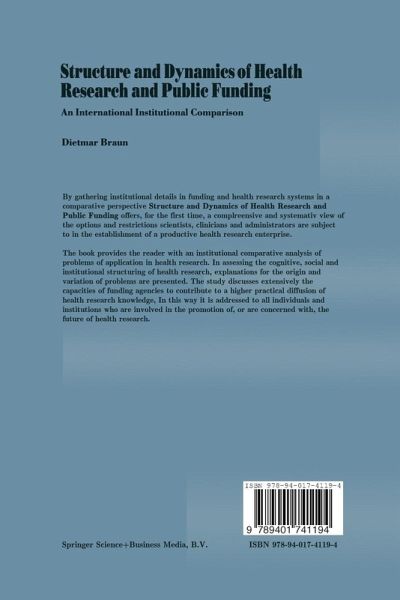 The Structure and Dynamics of Health Research and Public Funding provides the reader with a comparative institutional analysis of problems of application in health research. In assessing the cognitive, social and institutional structuring of health research, explanations for the origin and variation of problems are presented. The study extensively discusses the capacities of funding agencies to contribute to a higher practical diffusion of health research knowledge. It is thus addressed to all individuals and institutions who are involved in the promotion of, or are concerned with, the future of health research.