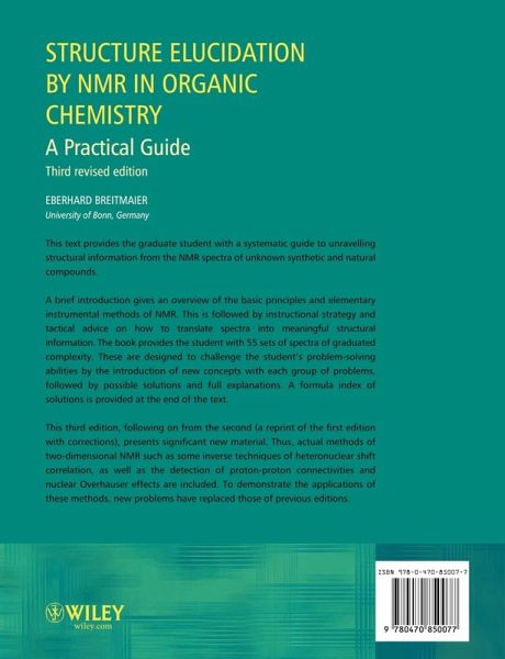 This text provides the graduate student with a systematic guide to unravelling structural information from the NMR spectra of unknown synthetic and natural compounds. A brief introduction gives an overview of the basic principles and elementary instrumental methods of NMR. This is followed by instructional strategy and tactical advice on how to translate spectra into meaningful structural information. The book provides the student with 55 sets of spectra of graduated complexity. These are designed to challenge the student's problem-solving abilities by the introduction of new concepts with each group of problems, followed by possible solutions and full explanations. A formula index of solutions is provided at the end of the text. This third edition, following on from the second (a reprint of the first edition with corrections), presents significant new material. Thus, actual methods of two-dimensional NMR such as some inverse techniques of heteronuclear shift correlation, as well as the detection of proton-proton connectivities and nuclear Overhauser effects are included. To demonstrate the applications of these methods, new problems have replaced those of previous editions.