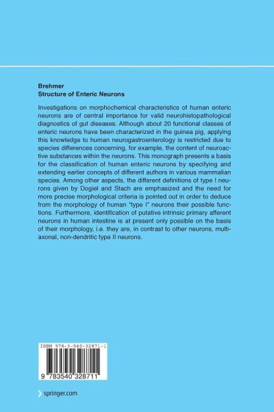 1 Introduction The plexuses of Auerbach and Meissner are peculiar to the gut; they extend from the beginning of the unstriated portion of the oesophagus to the end of the rectum. They have usually been considered to belong to the sympathetic system, but it appears to me preferable to place them in a class by themselves. We may speak of them as forming the enteric nervous system. (Langley 1900) In this context,itislessimportant that Langleyexcludedthe striated part of the oesophagus from his de?nition of the enteric nervous system (ENS). Much more remarkable seems to be that for Langley, a physiologist, structural reasons were the most decisive for taking the nervous system within the wall of the gastrointestinal tract as an entity unto itself. On the one hand, he argued that enteric nerve cells differ in their histological character from those in para- and prevertebral ganglia. On the other hand, there were few connections of enteric nerve plexuses with the central nervous system(CNS) through sympathetic or other autonomic nerves (which had already been described, however; Auerbach 1862). In his later, more famous monograph, he divided the autonomic nerves into three groups: sympathetic, parasympathetic and intestinal nerves (Langley 1921). This division seems to be all the more modern considering that, during the following decades, many authors and textbooks moved away from this division. The signi?cance of enteric neurons was reduced to that of postganglionic relay stations of vegetative nerves (Müller 1921; Lawrentjew 1929; Botár et al. 1942).