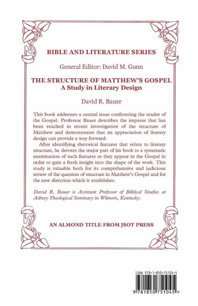 This book addresses a central issue confronting the reader of the Gospel. Professor Bauer describes the impasse that has been reached in recent investigation of the structure of Matthew and demonstrates that an appreciation of literary design can provide a way forward. After identifying rhetorical features that relate to literary structure, he devotes the major part of his book to a systematic examination of such features as they appear in the Gospel in order to gain a fresh insight into the shape of the work. This study is valuable both for its comprehensive and judicious review of the question of structure in Matthew's Gospel and for the new direction which it establishes.