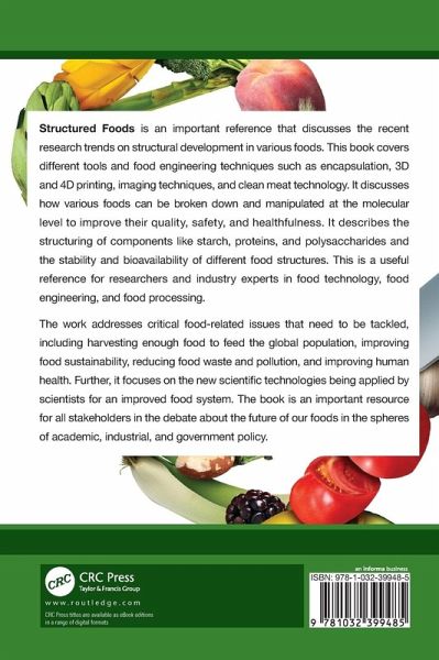 The book covers recent research trends on structure development in various foods. It focuses on key tools and food engineering techniques like encapsulation, 3D and 4D printing, imaging techniques, and clean meat technology. It caters to food scientists in academic, industrial, and government spheres.