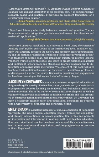This book follows the explicit instructional sequence noted by educational researchers as the most effective means of teaching students new skills and content. It begins by offering a rationale for why students should be interested in learning about structured literacy, and how they can use it in their teaching practice. It provides background knowledge needed to contextualize the book's content. Then, it takes learners step by step through the process of assessing students and creating effective structured literacy instructional routines. Detailed information about how to implement structured literacy instruction and intervention at all three tiers is provided. This textbook will be a unique and valuable addition to the extant literature because thus far, no book has approached the topic in this way. There are books about structured literacy that include examples of learning activities (Spear-Swerling, et al., 2021), but there is no single comprehensive textbook that can be readily picked up and used by college instructors and their students. This book is not a compendium of the research, nor is it a program with scripted lessons. It is a comprehensive textbook that uniquely provides the background information on structured literacy and the methods related content needed to successfully prepare preservice teachers to assess, plan and implement structured literacy instruction and intervention. The book is designed to be used in the context of a college level one or two semester undergraduate or graduate literacy course. Currently, no similar textbook exists. This book defines structured literacy, describes the history of reading research and the science of reading. Then, the book provides explicit information about how students learn to read and the most effective methods and strategies teachers can use to teach reading to all students. Next, the book provides detailed and specific instruction in specific structured literacy practices to use at Tiers 1 and 2. Intensive assessment, diagnostic and instructional strategies for learners who require individualized Tier 3 intervention are thoroughly explained. Many detailed examples of specific instructional routines and corrective procedures are included, along with reproducibles that support lesson planning, implementation, and assessment. At the end of each chapter, discussion questions and suggestions for hands-on learning activities are provided. Preparing pre-service teachers in the whys and hows of structured literacy instruction and intervention allows them to teach reading effectively according to current understanding of the science of reading. Teachers prepared with this knowledge base will be able to use the resources in this book to create additional materials and adapt materials from any literacy program to individualize instruction according to the needs of their students. This book will be a valuable addition to any college level general or special education reading methods course. The instructional routines taught in the book are designed to be accessible to students with and without disabilities. Effective reading instruction, such as the kind described in this book, increases educational equity for students of color and English learners. Suggestions for differentiating instruction based upon individual student needs are provided.