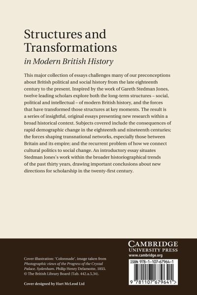 This major collection of essays challenges many of our preconceptions about British political and social history from the late eighteenth century to the present. Inspired by the work of Gareth Stedman Jones, twelve leading scholars explore both the long-term structures - social, political and intellectual - of modern British history, and the forces that have transformed those structures at key moments. The result is a series of insightful, original essays presenting new research within a broad historical context. Subjects covered include the consequences of rapid demographic change in the eighteenth and nineteenth centuries; the forces shaping transnational networks, especially those between Britain and its empire; and the recurrent problem of how we connect cultural politics to social change. An introductory essay situates Stedman Jones's work within the broader historiographical trends of the past thirty years, drawing important conclusions about new directions for scholarship in the twenty-first century.