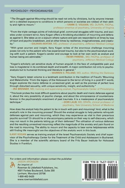 Deals with obstacles in the mourning process as experienced in individual cases and in large groups, in life-threatening situations. This book describes the therapeutic tools that the author employed to achieve healthy outcomes. It focuses on various defenses, their function and importance, and on the difficulty of relinquishing them.