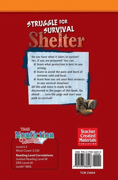 Showcasing important survival skills, this fascinating book examines the outdoor skills that are needed to survive extreme elements. Developed by Timothy Rasinski and Lori Oczkus, and featuring TIME content, this book includes essential text features like an index, captions, glossary, and table of contents. The detailed sidebars, fascinating images, and Dig Deeper section prompt students to connect back to the text and encourage multiple readings. Check It Out! includes suggested resources for further reading. Aligned with state standards, this title features complex content appropriate for students preparing for college and career readiness.