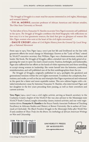 From 1955 to 1975, Vera Pigee (1924-2007) put her life and livelihood on the line with grassroots efforts for social change in Mississippi, principally through her years of leadership in Coahoma County's NAACP. Known as the "Lady of Hats," coined by NAACP executive secretary Roy Wilkins, Pigee was a businesswoman, mother, and leader. Her book, The Struggle of Struggles, offers a detailed view of the daily grind of organizing for years to open the state's closed society. Fearless, forthright, and fashionable, Pigee also suffered for her efforts at the hands of white supremacists and those unwilling to accept strong women in leadership. She wrote herself into the histories, confronted misinformation, and self-published one of the first autobiographies from the era. Women like her worked, often without accolade or recognition, in their communities all over the country, but did not document their efforts in this way. The Struggle of Struggles, originally published in 1975, spotlights the gendered and generational tensions within the civil rights movement. It outlines the complexity, frustrations, and snubs, as well as the joy and triumphs that Pigee experienced and witnessed in the quest for a fairer and more equitable nation. This new edition begins with a detailed introductory essay by historian Françoise N. Hamlin, who interviewed Pigee and her daughter in the few years preceding their passing, as well as their coworkers and current activists. In addition to the insightful Introduction, Hamlin has also provided annotations to the original text for clarity and explanation, along with a timeline to guide a new generation of readers.