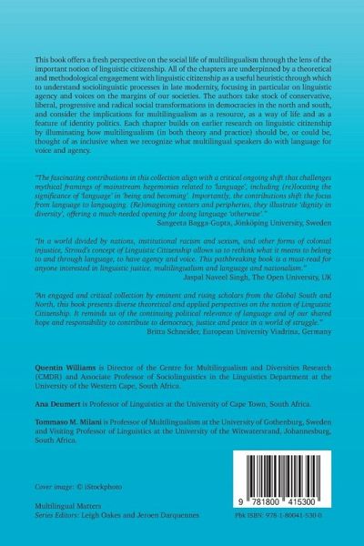 This book offers a fresh perspective on the social life of multilingualism through the lens of linguistic citizenship. Each chapter illuminates how multilingualism (in both theory and practice) should be, or could be, thought of as inclusive when we recognize what multilingual speakers do with language for voice and agency.