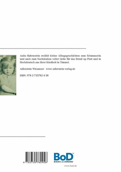 Anita Rabenstein erzählt kleine Alltagsgeschichten zum Schmunzeln und auch zum Nachdenken voller Liebe zum Detail up Platt und in Hochdeutsch aus ihrer Kindheit in Timmel.Herausgeber: Hans-Jürgen Sträter, Adlerstein Verlag
